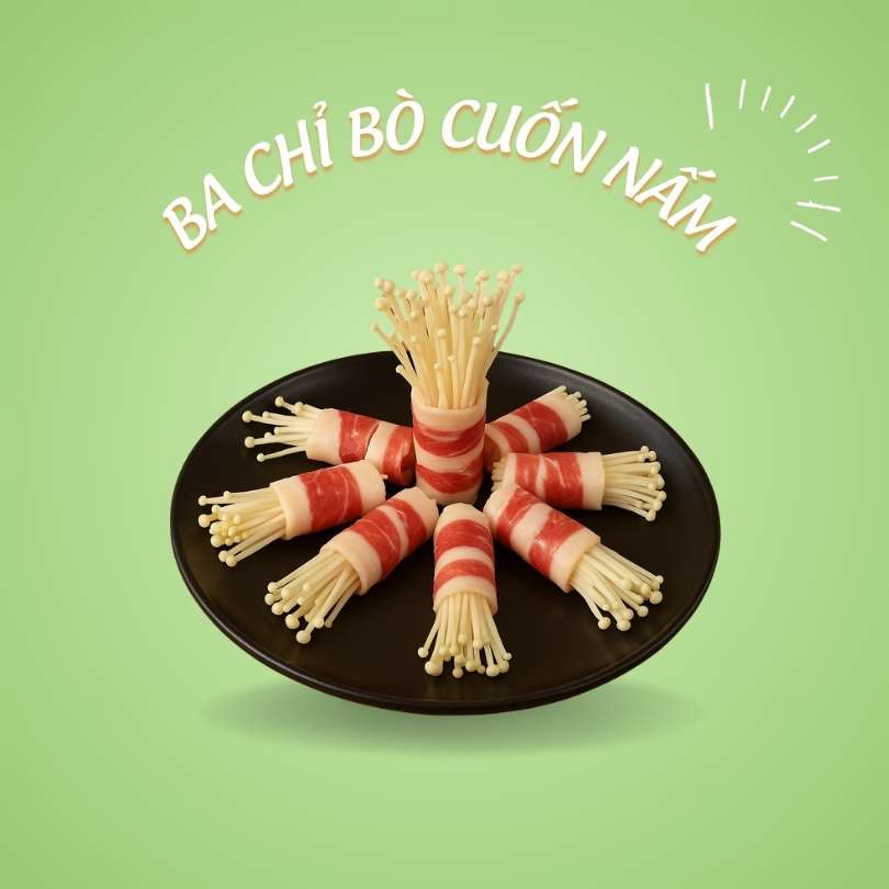 Ba chỉ bò cuốn nấm kim
